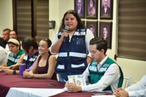 Los jóvenes se congregaron en el salón de cabildo de Palacio Municipal, donde el Presidente Antonio Menéndez les dio la bienvenida y les emitió un mensaje en el que resaltó que es muy valioso el trabajo comunitario que realizan en favor de la sociedad, y los conminó a que se fortalezcan como sector e inciten a los gobiernos a crear políticas públicas en beneficio de todas y todos los jóvenes.