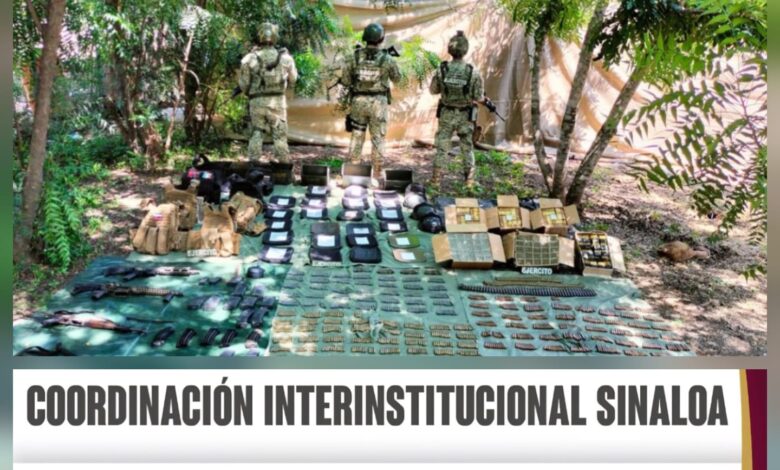 Varias armas de fuego, además de municiones y equipo táctico, fueron asegurados luego de que civiles los abandonaran al huir de las autoridades, en la sindicatura de Tepuche, Culiacán.